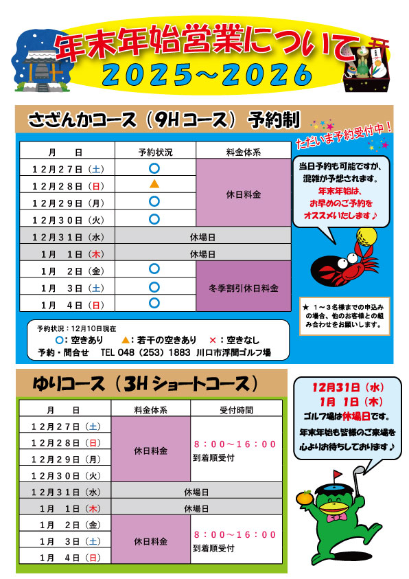 | 12/20(土)〜28(日) ゆりコースお楽しみ抽選会を実施いたします! |