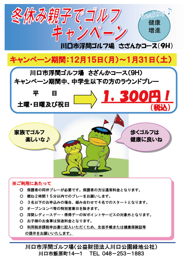 冬休み親子でゴルフキャンペーンを開催いたします! |