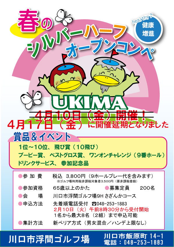 | 春のシルバーハーフオープンコンペは、4月17日(金)に延期となりました |