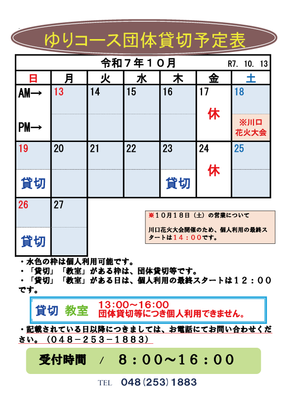 ◎ ゆりコース(3Hコース)個人利用のお客様へ