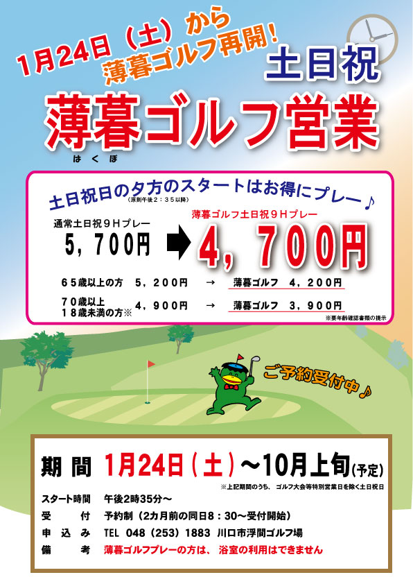 1月24日(土)〜薄暮ゴルフ営業再開いたします! |