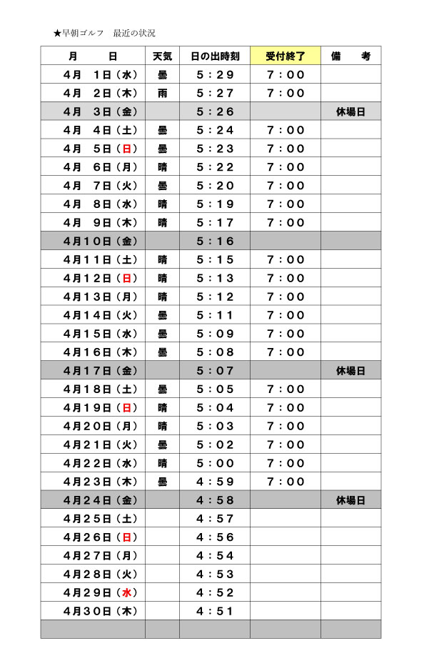 | 早朝ゴルフ営業中!開始時刻は日の出から! |
