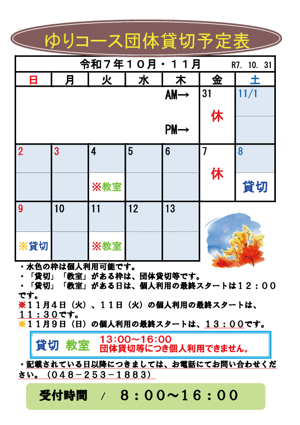◎ ゆりコース(3Hコース)個人利用のお客様へ